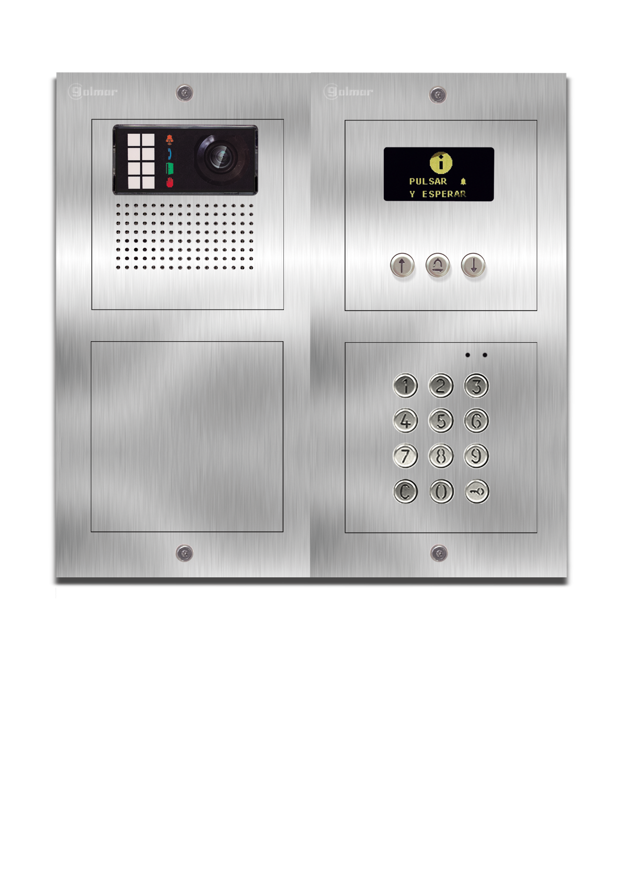 Inbouw. RVS316 front en frame. RVS toetsenbord (verlicht) met akoestische feedback bij bediening. Gesproken feedback bij bediening optioneel. OLED display. Wide-angle (120°) pan-tilt camera. Auto-dim witlicht leds. Optische weergave commando's .