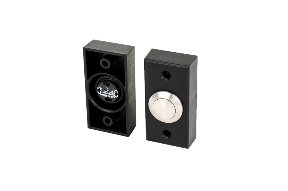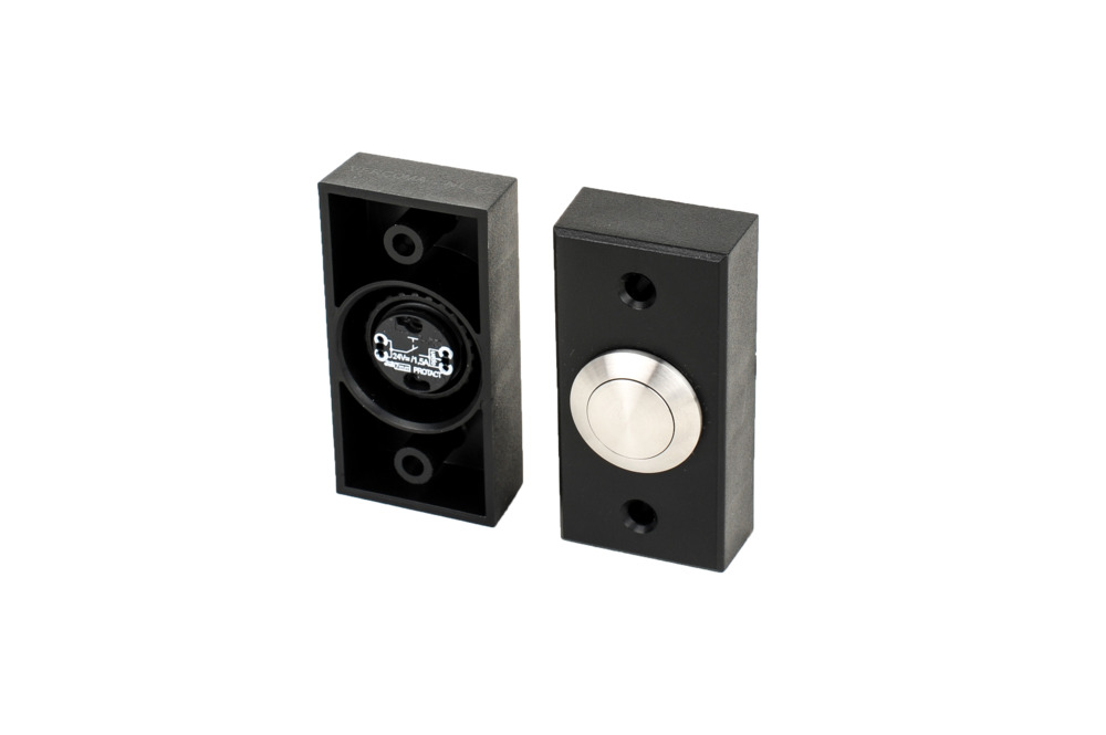 Kunststof (PA) behuizing, zwart, met een robuuste PROTACT 150VA (IP54) beldrukker erin gemonteerd. Inclusief twee stuks 3 x 35 montage schroeven. Geschikt voor digitale (aansluiting direct op telefoon/monitor) en conventionele (aansluiting op traditionele schel/ding-dong) systemen.