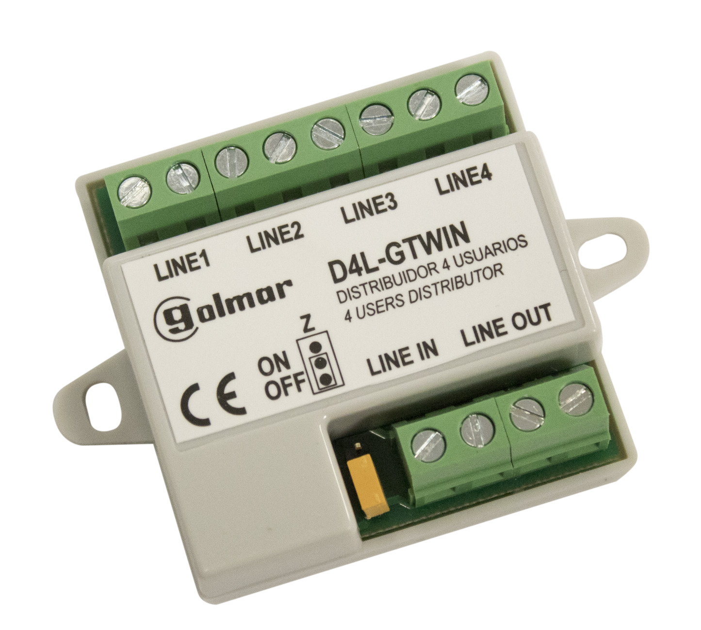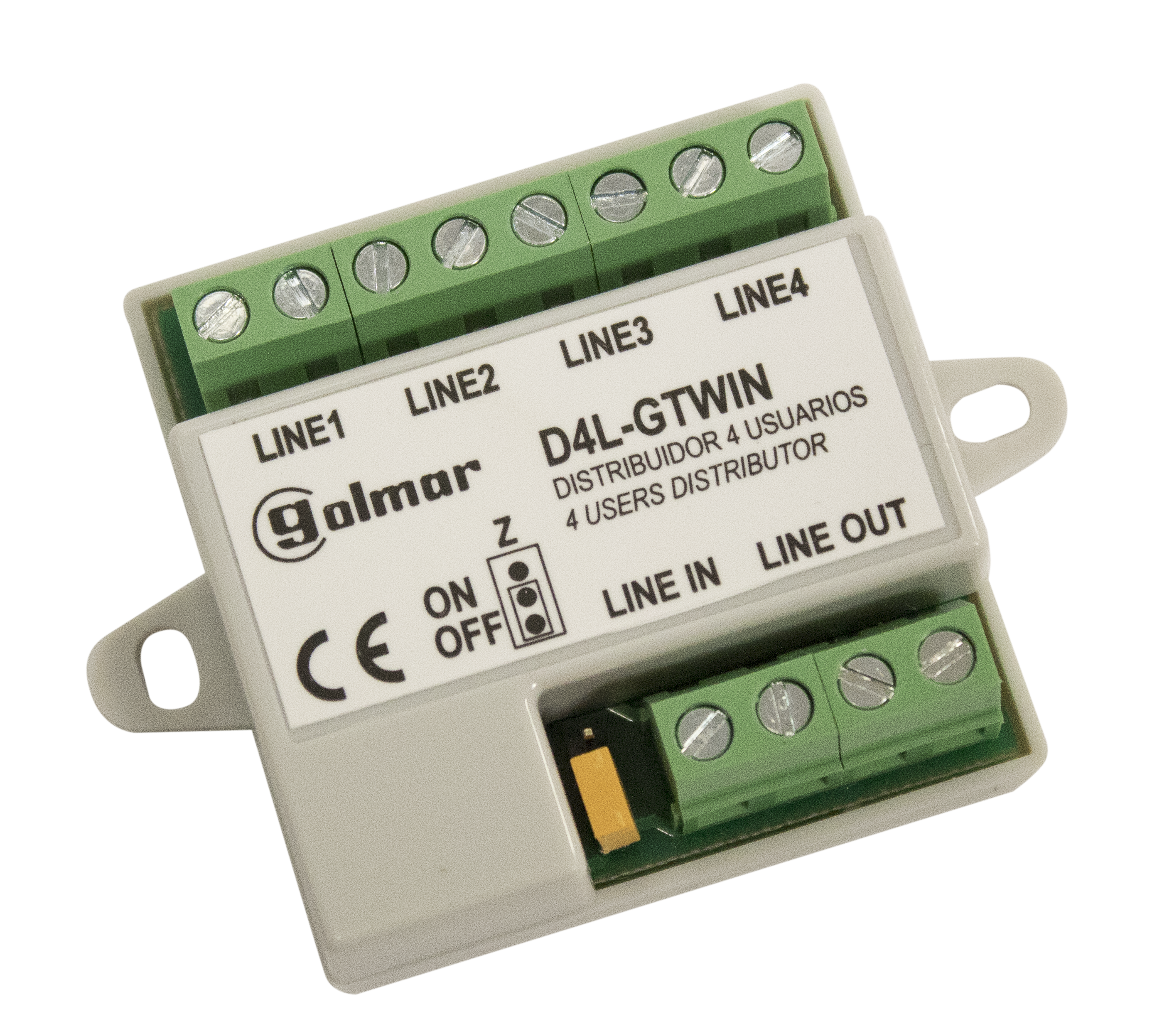 Thermisch kortsluit-beveiligd. Garandeert werking van een GTwin installatie (video én audio) indien bijvoorbeeld bewoner(s) onverhoopt sluiting in de bus veroorzaken. Bij afschakelen splitter ondervinden andere bewoners geen hinder. De storing is snel te lokaliseren en te verhelpen. Na oplossen storing is de betreffende bewoner direct weer op het systeem gekoppeld.