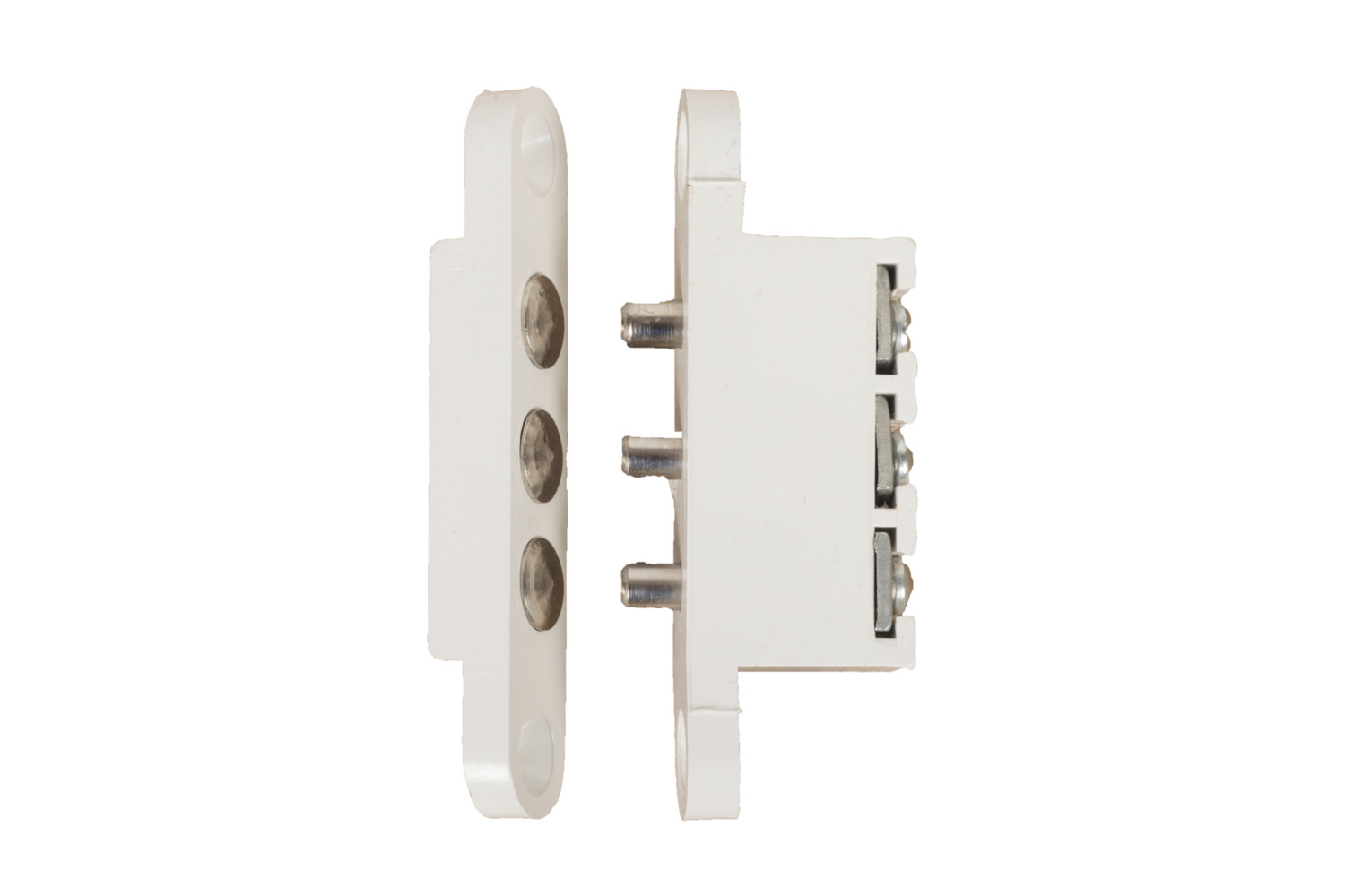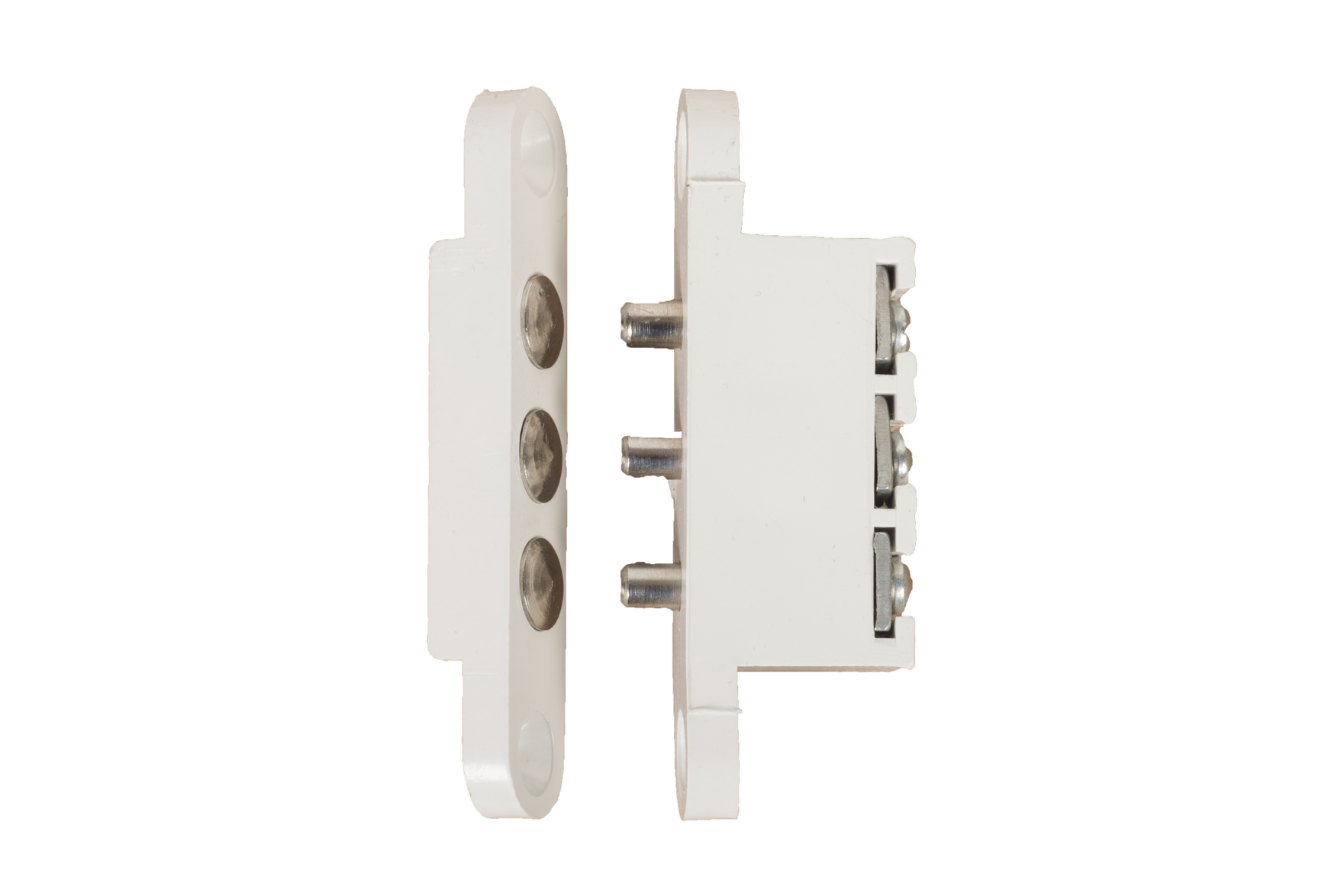 Bedoeld om de stroom van het kozijn naar de deur over te brengen. Als de deur wordt geopend verbreekt de stroom. 3-polig contact zodat 3 aders kunnen worden aangesloten.